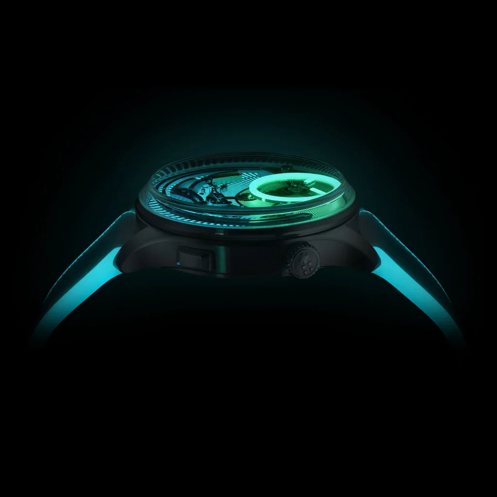 It looks kind of alien, but in the best way possible, like something straight out of Tron. The amount of lume is outrageous, yet somehow it works. On a classic-looking watch like the Bel Canto, that could easily look childish, but Christopher Ward has managed to make it feel futuristic instead. When it’s not glowing, the turquoise dial contrasts beautifully with the titanium case. Add in the white rubber strap infused with Super-LumiNova, and you’ve got a genuinely striking piece.